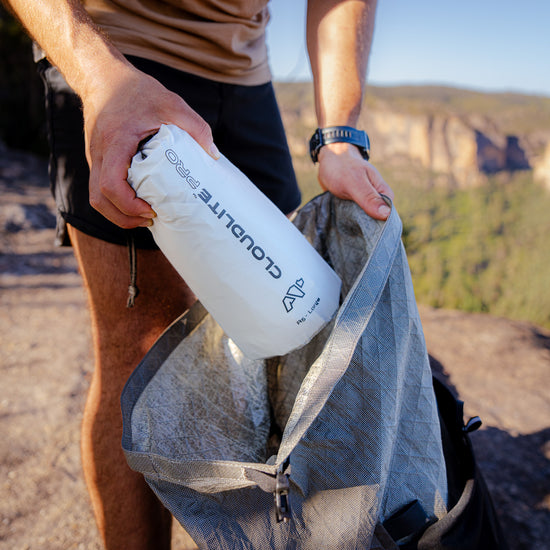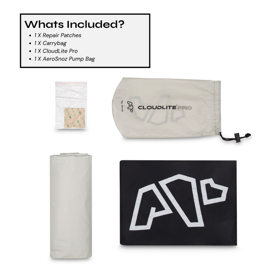 The CloudLite Pro uses our AeroSnoz Pump Bag, allowing you to inflate the pad quickly without using your breath.