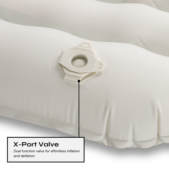To deflate, simply open the bottom valve of the X-Port valve to release air from the pad. Roll from the foot toward the head to push out any remaining air, and it packs down small in seconds.