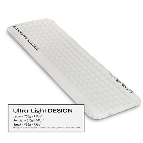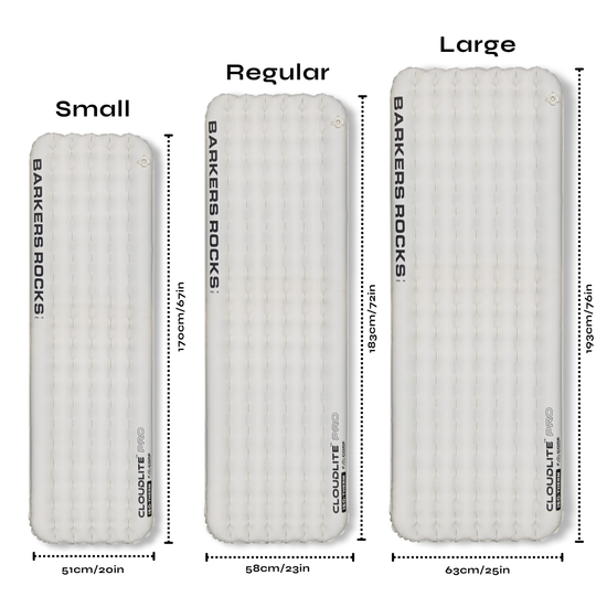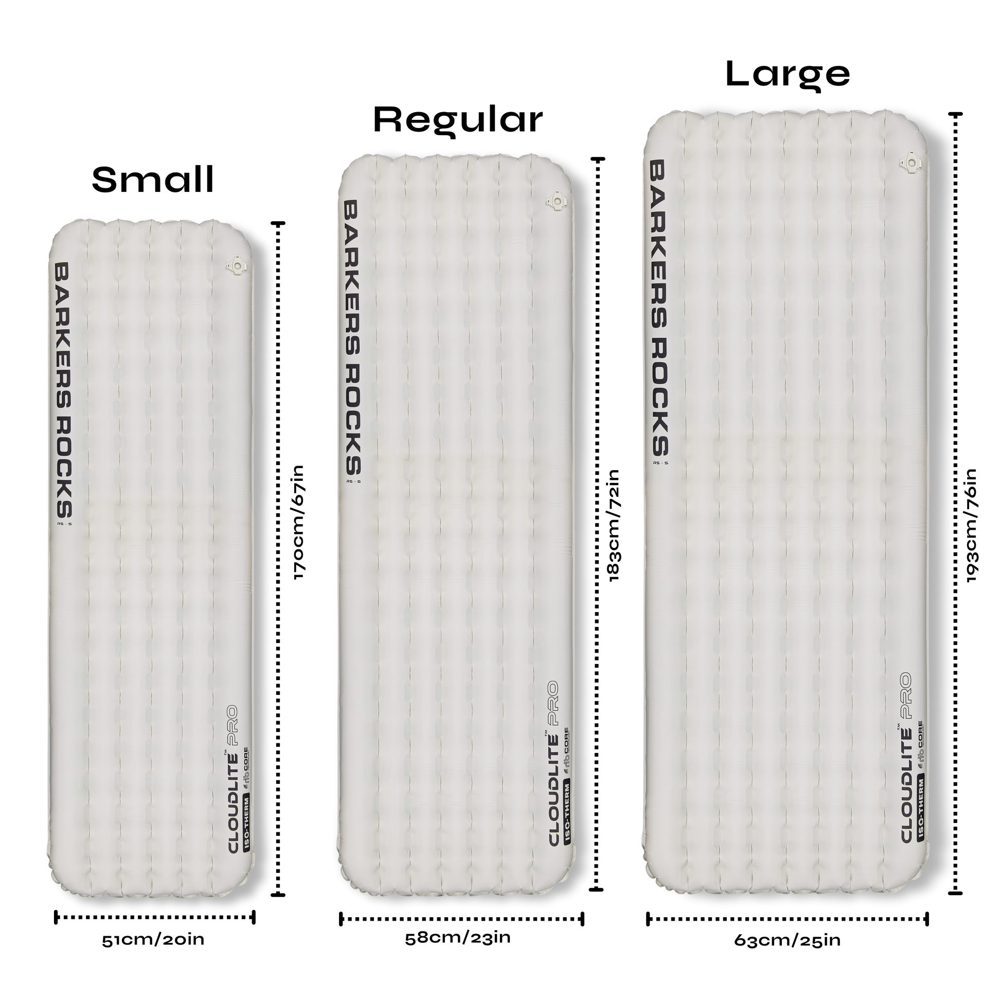 The CloudLite Pro is available in three sizes to suit different sleeping styles and body types.