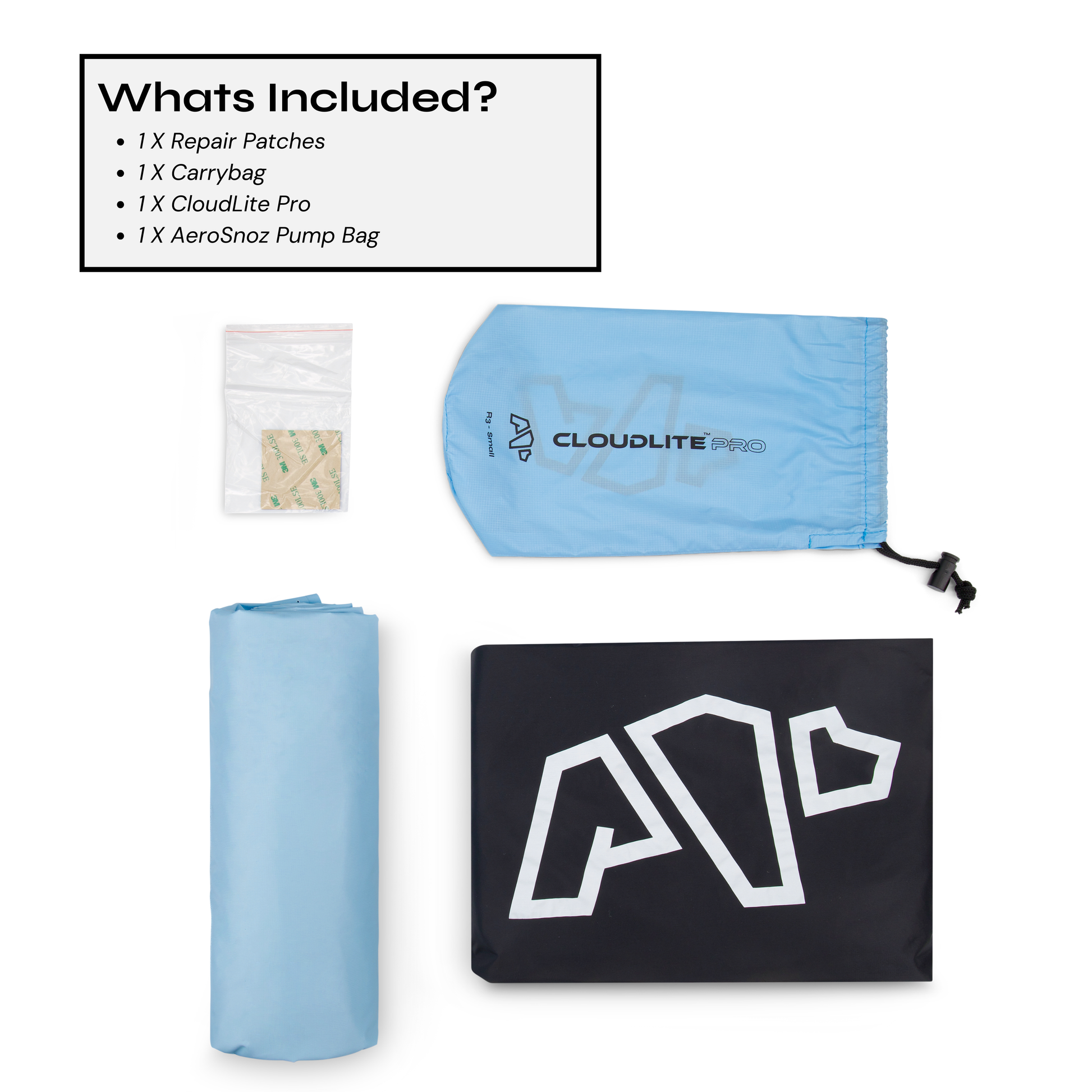The CloudLite Pro uses our AeroSnoz Pump Bag, allowing you to inflate the pad quickly without using your breath.