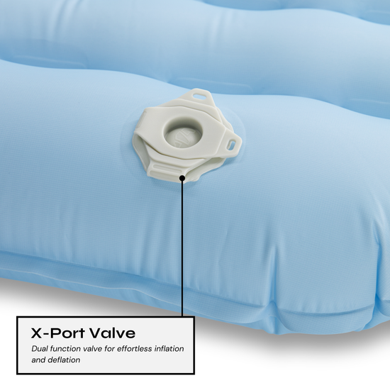 To deflate, simply open the bottom valve of the X-Port valve to release air from the pad. Roll from the foot toward the head to push out any remaining air, and it packs down small in seconds.
